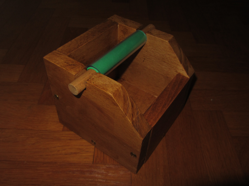 Abschließend das Moosgummi in den Schlauch einlegen und das Rundholz (vorzugsweise ebenfalls lackiert) eingeführt. Um Ärger mit der Regierung zu vermeiden habe ich noch Gummifüße unter den Kasten geklebt und fertig!